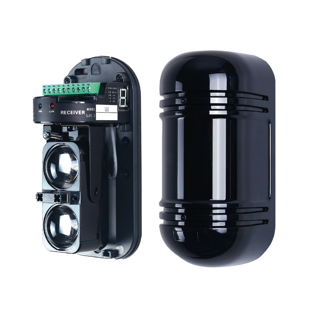 Incluye salidas de alarma NO/NC de 24 VDC/0,5 A y un sistema de anti-sabotaje integrado en el transmisor y receptor.
